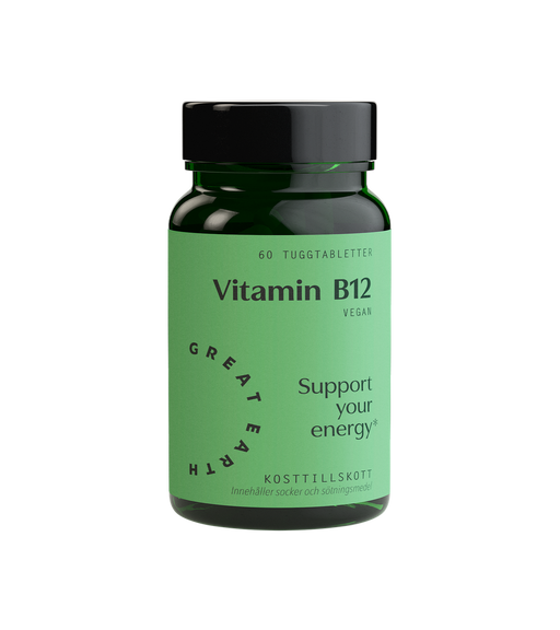 Great EarthKosttillskott för energi och dig som är vegan Vitamin B12 bidrar till att immunsystemets normala funktion och till att minska trötthet och utmattni...