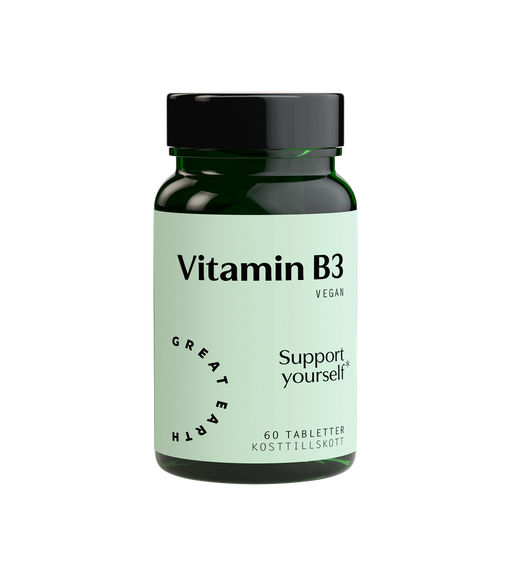 Great EarthKosttillskott för hud och slemhinnor Vitamin B3, även kallat niacin, är ett vattenlösligt vitamin. Denna produkt innehåller 500 mg vitamin B3 per ...