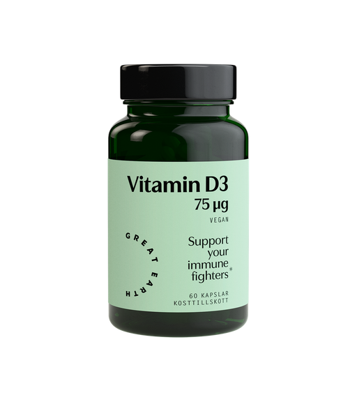Great EarthKosttillskott för immunförsvar och skelett Vegansk form av vitamin D3. Oftast utvinner man vitamin D3 från lanolin, fårull. Denna vegetabiliska fo...