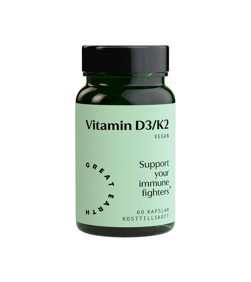 Great EarthKosttillskott för immunförsvar och skelett Vitamin D3/K2 är bra för bland annat ditt immunförsvar och skelett. Både Vitamin D och Vitamin K bidrar...
