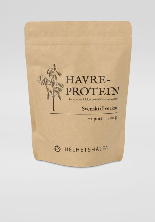 HelhetshälsaSvensktillverkat havreproteinpulver som innehåller alla essentiella aminosyror. Protein bidrar till att bibehålla muskelmassan och normal benstomme...