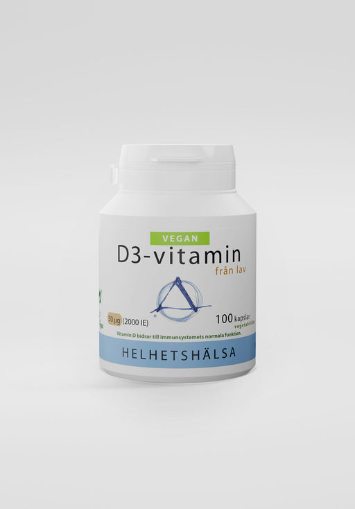 HelhetshälsaVegan D3-vitamin från lav med styrkan 50 µg (2000 (IE). Detta är ett vegan D-vitamin med den aktiva formen D3. Vitamin D har en roll i celldelnings...