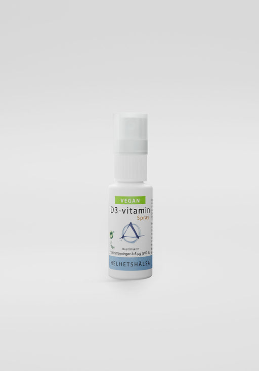 HelhetshälsaHelhetshälsas veganska D3-vitamin utvinns från lavar. Bra till barn En lagom dos till barn är 10 mikrogram (2 sprayningar) per dag. Vid denna dos...