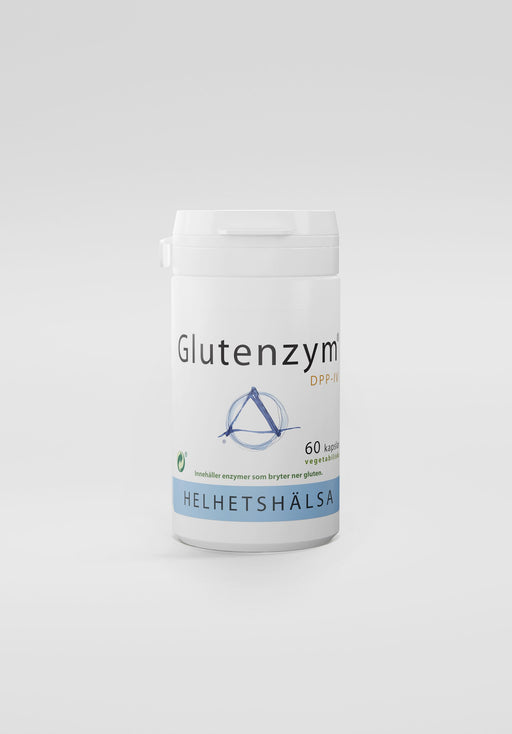 HelhetshälsaGlutenzym® innehåller en patentskyddad blandning av enzymer, bland annat DPP-IV, vars huvudsakliga funktion är att bryta ner gluten. Enzymerna spjä...