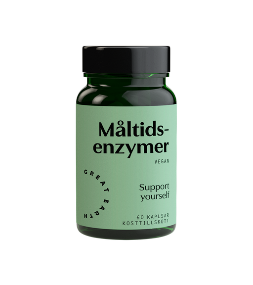 Great EarthKosttillskott med matsmältningsenzymer Våra Måltidsenzymer hjälper magen att bryta ner kolhydrater, protein, fett, laktos och fiberrika grönsaker....