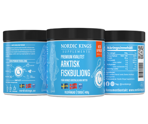 Nordic KingsHär har du en exklusiv fiskbuljong tillverkat av de finaste MSC-certifierade ingredienserna från Norges orörda vatten. Endast 100% torskkött an...