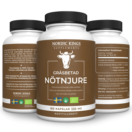 Nordic KingsNordic Kings gräsbetad Nötnjure EKO 180 Kapslar Fördelar: Ekologisk och gräsbetad Fri från tillsatser Rik på näringsämnen Rik på näringsä...