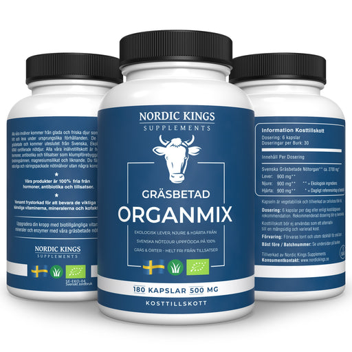 Nordic KingsNordic Kings gräsbetad Organmix EKO 180 kapslar Fördelar: 100% Ekologisk Organmix Från enbart svenska nötdjur Fri från tillsatser & fr...