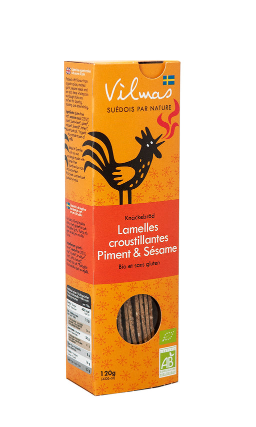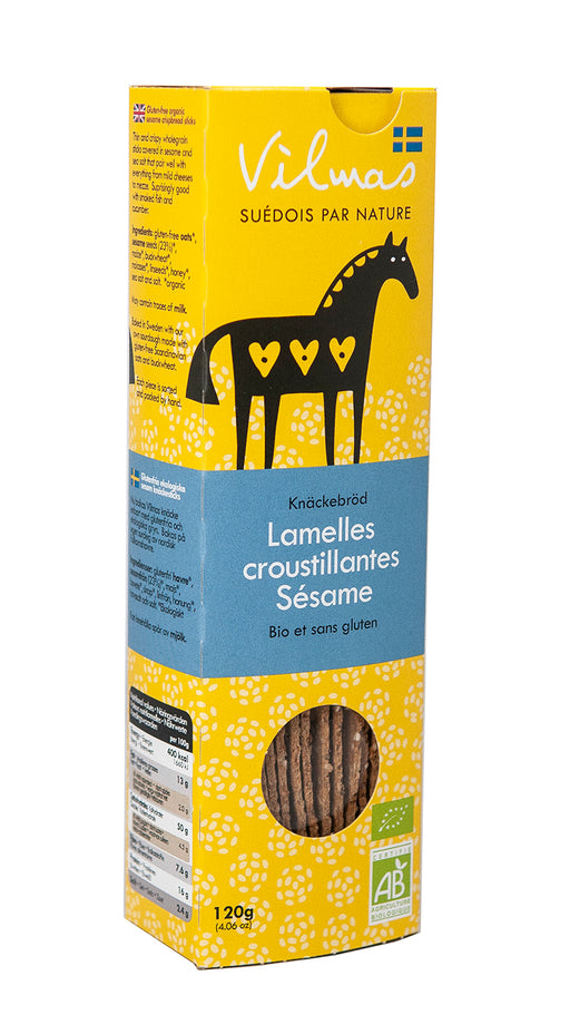 Vilmas Swedish OrganicVilmas Sesam Knäckesticks är knapriga fullkornsbröd med mycket smak. Eftersom de är gjorda av hemmagjord surdeg, rikligt med sesamfrön och havssal...