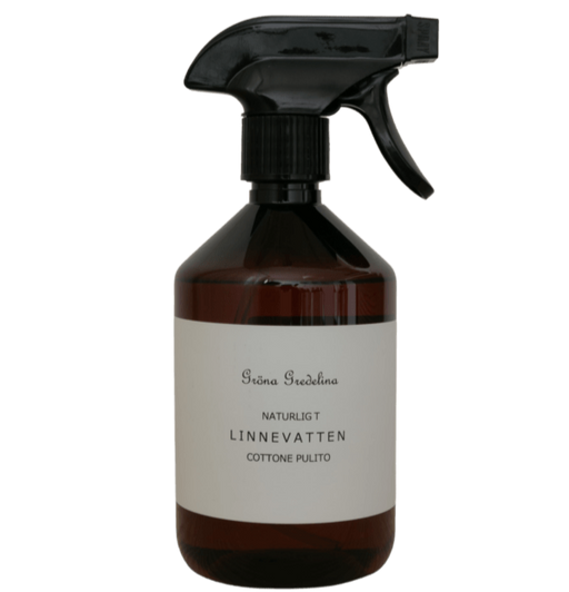 Gröna GredelinaEtt väldoftande linnevatten med naturliga ekologiska ingredienser. Sprejas direkt på textilier som du vill ska dofta rent och fräscht av finaste et...