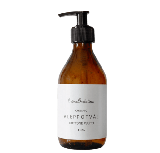 Gröna GredelinaEkologisk Tvål Gröna Gredelinas flytande Aleppotvål Cottone Pulito i glasflaska innehåller 16 % lagerbärsolja och doftar nytvättat och fräscht. Det...
