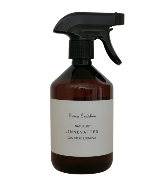 Gröna GredelinaLinnevatten Cashmere Legnoso har en elegant doft av mjuk cashmere och varma trätoner.Användning: Spreja på tvätten före strykning, inne i linneskåp...
