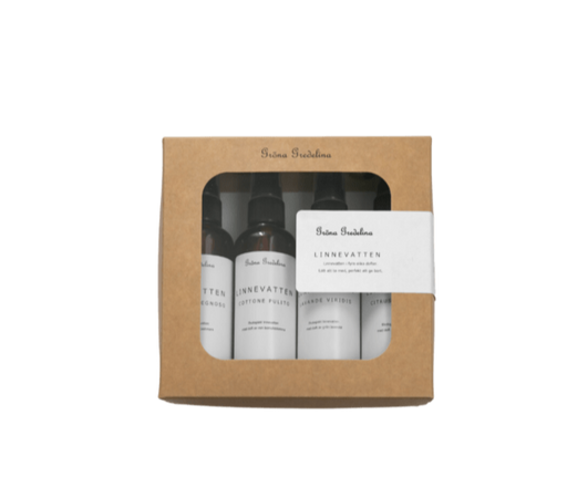 Gröna GredelinaButik – Gröna Gredelina / Alla Produkter / Övrigt / Gåvoset Linnevatten i set om 4st i en fin presentbox. Detta gåvoset innehåller alla våra fyra l...