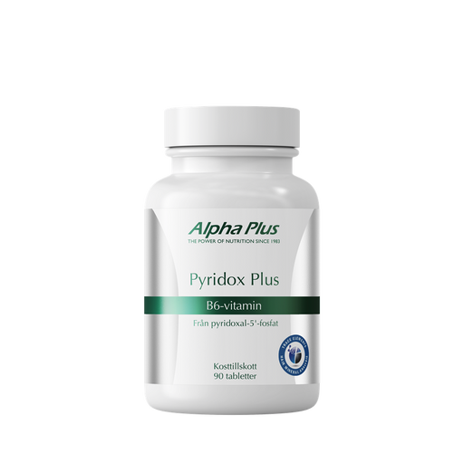 Alpha-plusAlpha Plus Pyridox Plus är ett kosttillskott som på ett effektivt sätt kombinerar B6-vitamin i form av pyridoxal-5-fosfat och synerginisterna tiami...