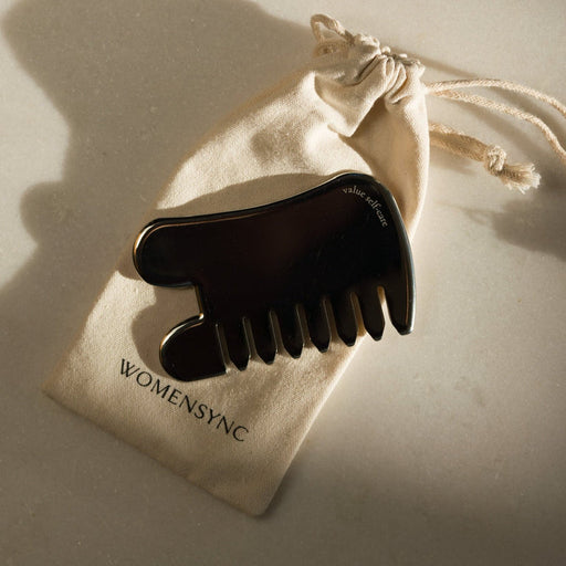 WomensyncGua Sha Comb är ett massageverktyg för skalp, kropp och ansikte med ursprung i kinesisk medicin som används för att stimulera lymfsystemet, öka blo...