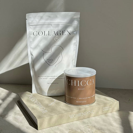 WomensyncWomensync Start Kit innehåller flera bästsäljande produkter. Chicca Roast: Koffeinfri, Fri från tillsatser, Ekologiskt producerad i Europa Collage...
