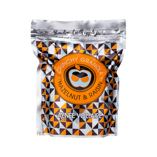 Renee VoltaireVegansk krispig granola på havre, hasselnöt och russin – en Renée Voltaire-klassiker! Lätt rostad med rapsolja och sötad med lite äppeljuice. God t...