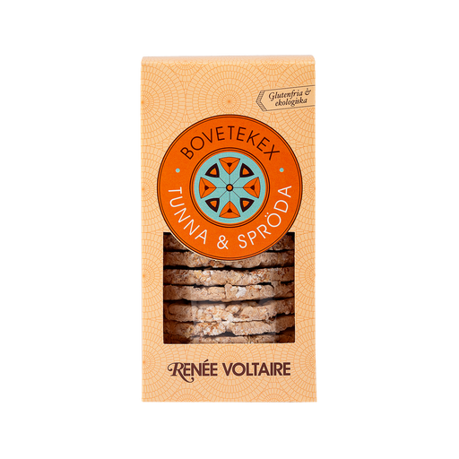 Renee VoltaireEkologiska, glutenfria och krispiga kex på enbart bovete – härligt smakrika, unikt tunna och spröda! Gott för hela familjen, med eller utan pålägg ...