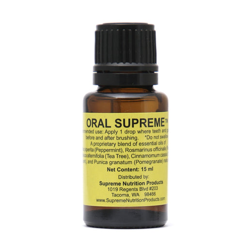 Supreme NutritionEterisk olja för munnen Oral Supreme består av en blandning av eteriska oljor att användas före och efter tandborstning.Gör så här: Ta en droppe Or...