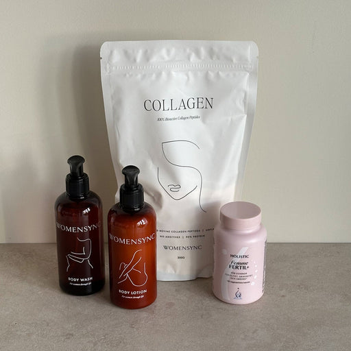 Womensync & HolisticUnder Graviditet Paket är det grundläggande kittet för din graviditet med produkter från både Womensync och Holsitc. Womensync Collagen är ett bio...
